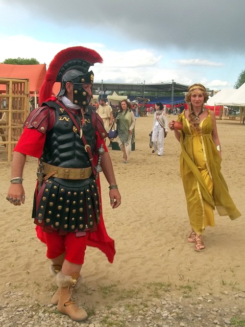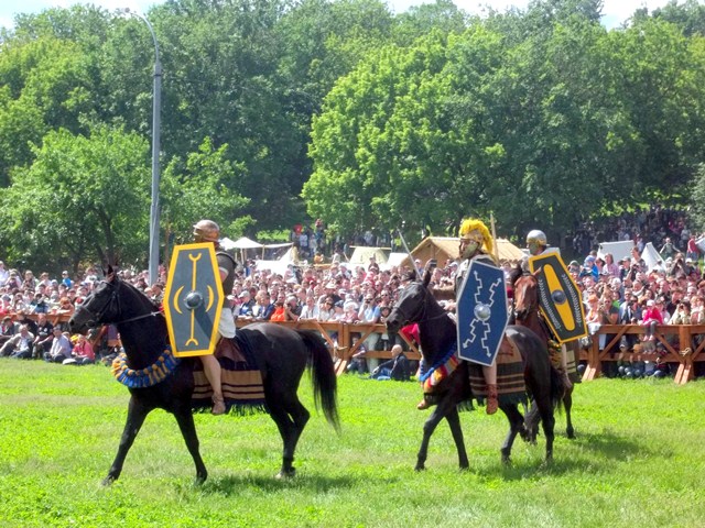 В минувшие выходные дни 6-7 июня зрители имели возможность приобщиться к миру античной истории и культуры. Они приходили семьями, компаниями, располагались на лужайках под деревьями в ожидании очередного представления, ходили по торговым рядам, покупая античные украшения, предметы быта, напитки и яства, слушали рассказы экскурсоводов об истории Древнего мира, сами принимали участие в импровизированных бытовых и батальных сценах.