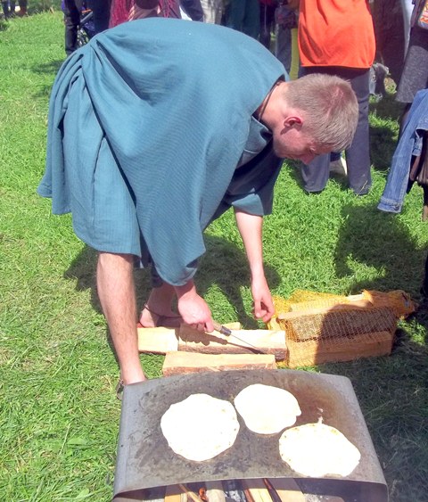 Гости с удовольствием пробовали себя в искусстве приготовления пресных лепешек на площадке Палестина, метали бревна и топоры в Германском поселении, чеканили античные монеты, участвовали в мастер-классах по пошиву кожаной обуви, ткачеству, ковке по металлу и конечно снимали все происходящее на фотокамеры и смартфоны.