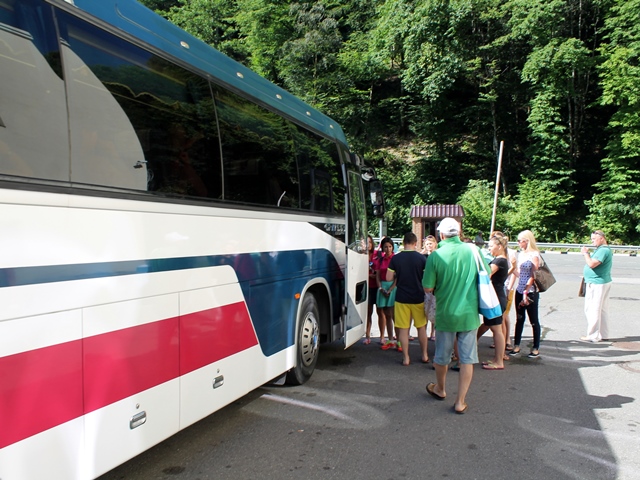 Авобус - сбор гостей на фирменный пляж "Роза Хутор".