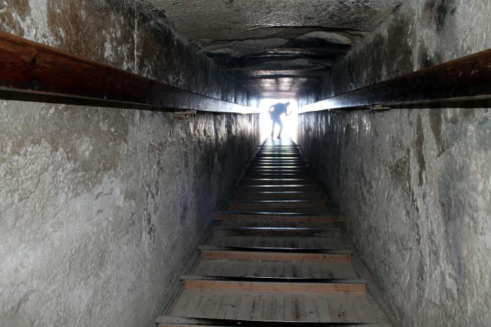 Вход в пирамиду: очень тесно, туристам с боязнью закрытого пространства лучше не рекомендовать такой спуск