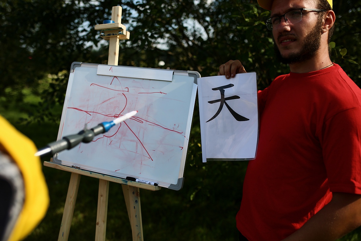 Да и изобразить иероглифы с завязанными глазами мы можем с легкостью!