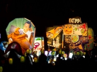 По традиции базельский Фаснахт в 4 часа утра открыло шествие фонарей – действо одновременно завораживающее и немного пугающее. Около 200 повозок с огромными фонарями в полной темноте идут по городу, сопровождаемые маршами, исполняемыми на флейтах и барабанах. Каждый фонарь – произведение искусства, сделанное вручную. На каждом можно увидеть надписи и сюжеты на злобу дня.
